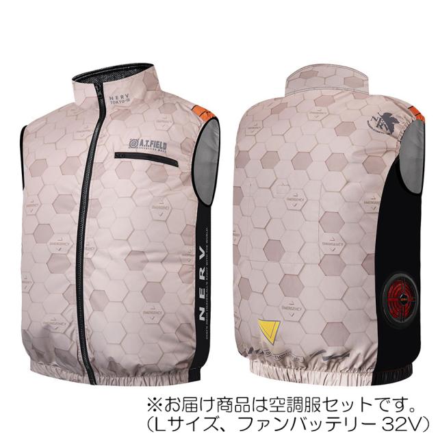 【在庫処分】G.B.Z 空調冷風服 COVELL COVELL×エヴァンゲリオンコラボ 空調服セット(ベストタイプ+ファンバッテリーセット32V) Lサイズ ベージュ 【品番:MJ-EVA2025-beige-L32】