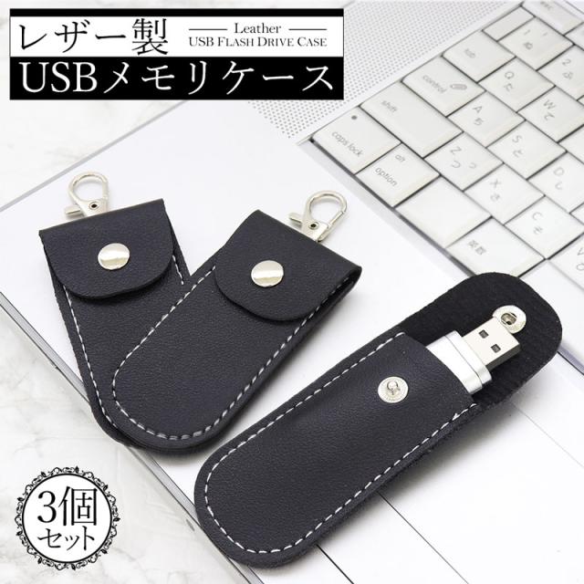 送料無料 3個セット USBメモリー ケース PU レザー コンパクト スタイリッシュ ビジネス プライベート シンプル デザイン おしゃれ 収納アイテム ギフト プレゼント