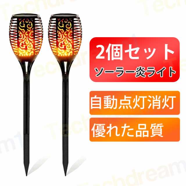 即納 2個セット ソーラー炎ライト 屋外 ガーデンLEDライト ソーラートーチライト ソーラーライト 自動点灯消灯 オートオンオフ IP65防水 電池不要