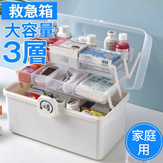 短納期 救急箱 薬箱 大容量 3層 収納ケース 収納ボックス 工具箱 応急ボックス 透明 収納箱 取っ手付き 折り畳み 携帯便利 家庭用 薬入れ 小物入れ