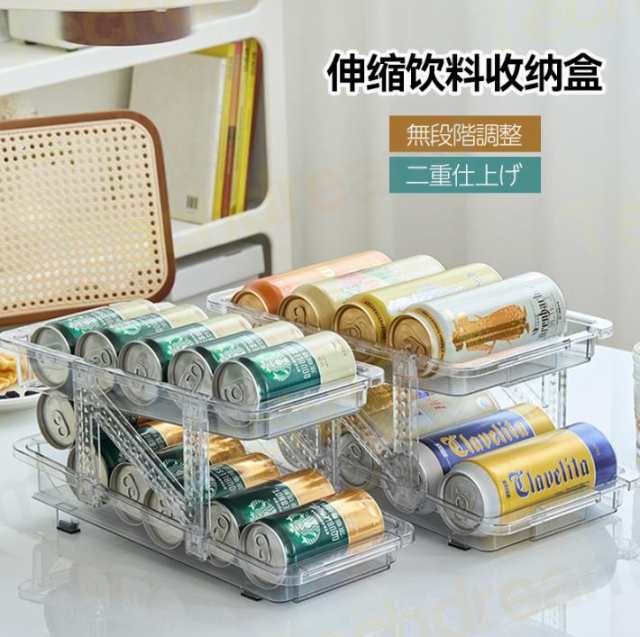 缶収納ラック 缶ストッカー 冷蔵庫 自動補充 500ml用 無段階調節 2段階構造 缶ビール ホルダー 缶ビール 缶ジュース 250ml 350ml 缶 スッキリ収納
