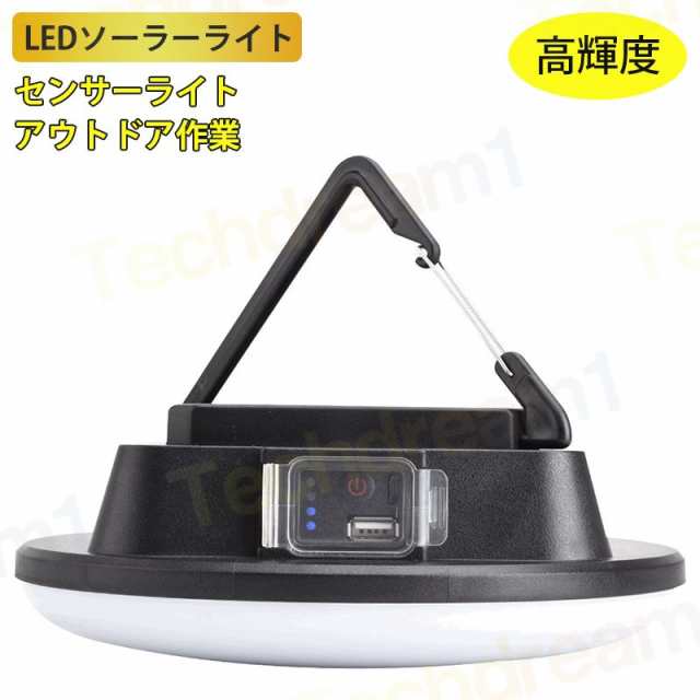 LEDソーラーライト センサーライト 応急 高輝度LEDランプ 残量表示 アウトドア作業 IPX6防水仕様モバイルバッテリーとして利用可能 吊り下げフック&マグネット搭載 アウトドア&防災用品