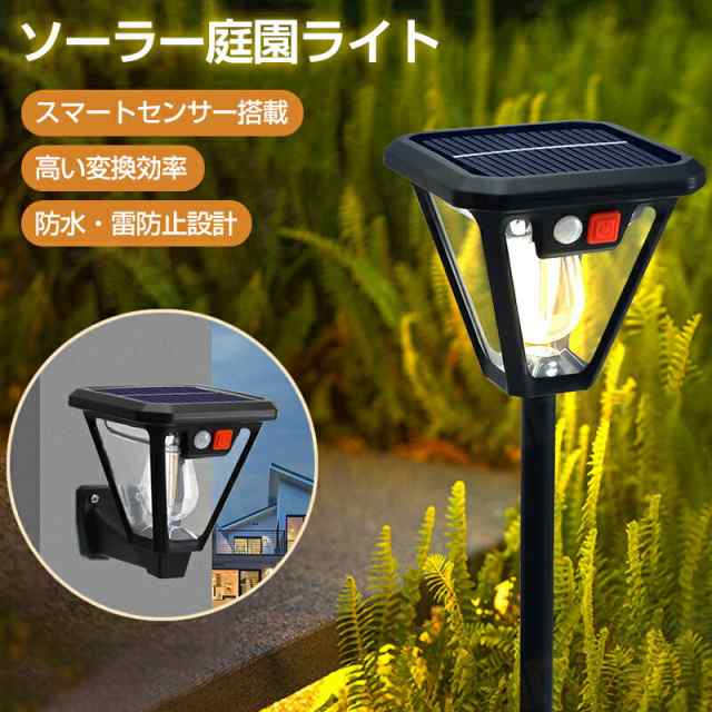 ガーデンライト ソーラー 屋外 暖色 庭園灯 ソーラー街灯 庭用ライト スマートセンサー搭載 防水 装飾 雰囲気 おしゃれ レトロ感 装飾 12時間照明 自動点灯消灯 防犯対策 外灯 太陽光パネル充電 簡単取付 庭園照明 庭園灯 お庭 歩道 玄関先 芝生 小道 人感センサー搭載