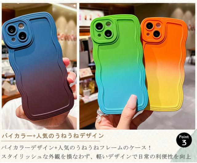 バイカラー うねうね iPhone 17 iPhone 16 iPhone 15 iPhone 14 スマホケース iPhone17ProMax iPhone16ProMax iPhone15ProMax iPhone14ProMax iPhone14Plus iPhone15Plus iPhone16Plus iPhoneAir ケース 耐衝撃 カメラレンズ保護