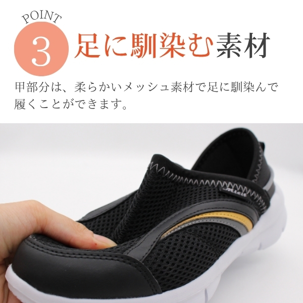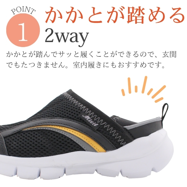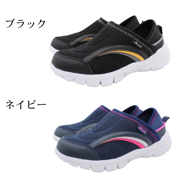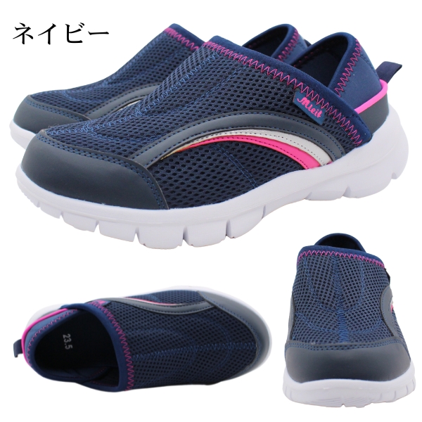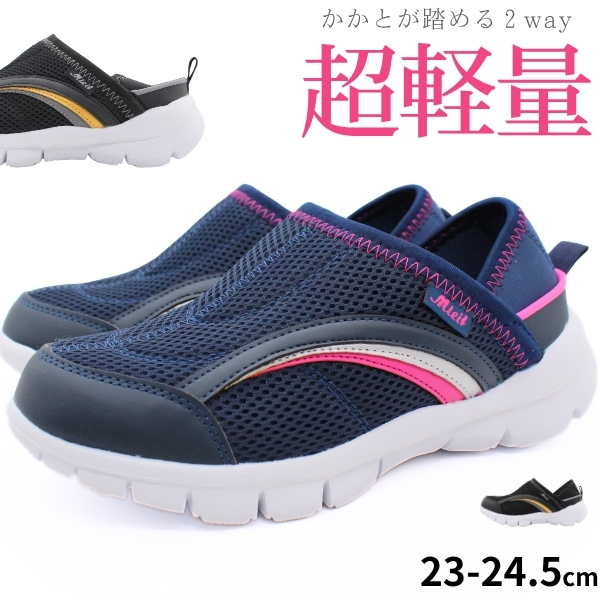 スニーカー レディース 靴 スリッポン 黒 ブラック 紺 ネイビー 2way 軽量 軽い 超軽量 幅広 ワイド 3E シンプル リハビリ 介護 玄関用 仕事 屈曲性 かかとが踏める 通気性 メッシュ 歩きやすい 蒸れない 脱ぎ履き楽々 mielf SK-0141