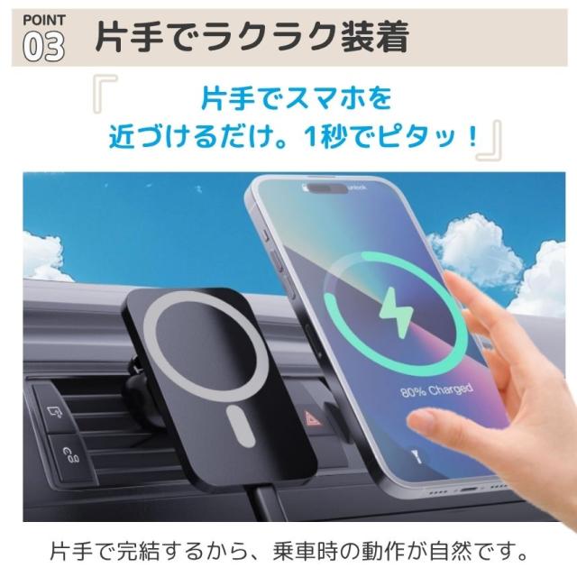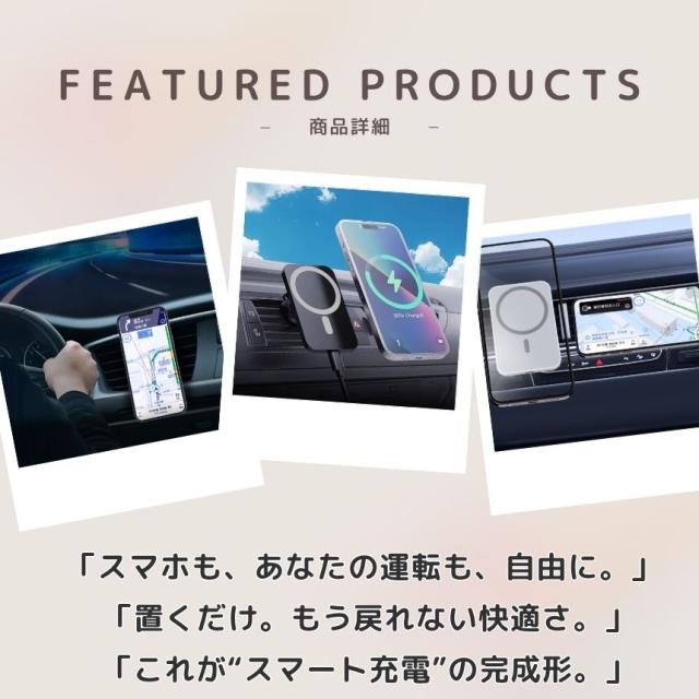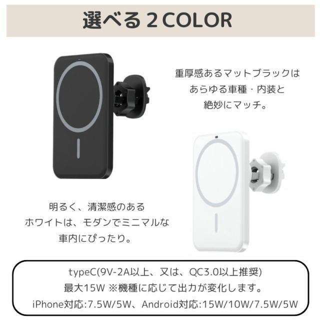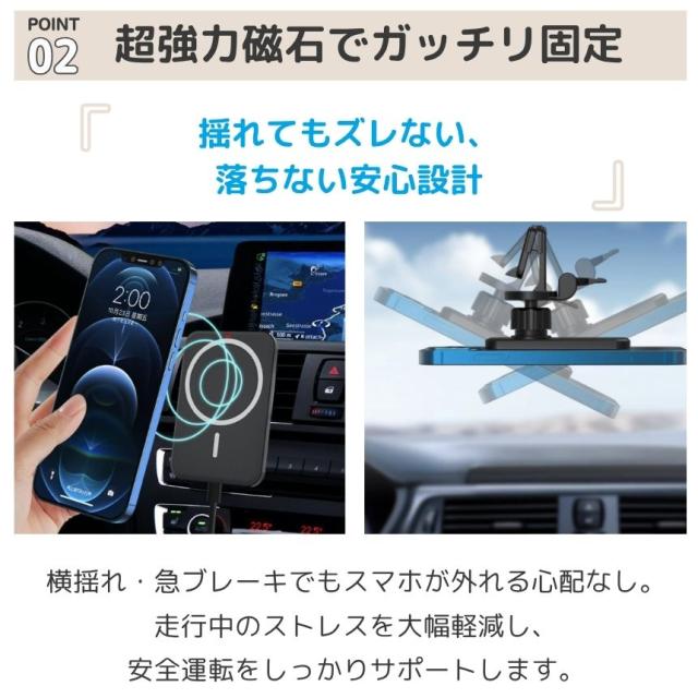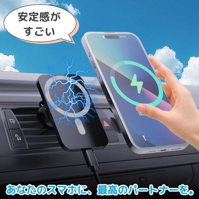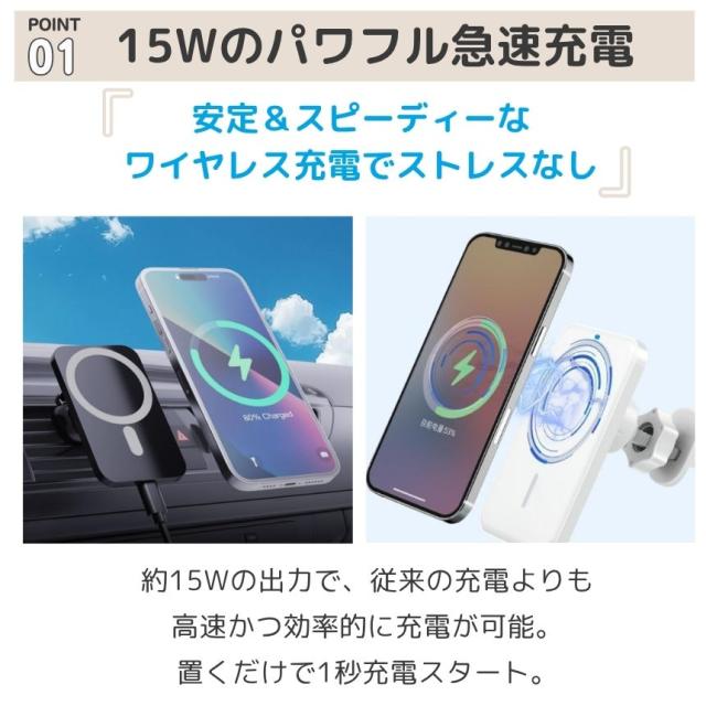 2個セット ワイヤレス充電器 車載 スマホ 充電器 magsafe スタンド マグネット スマホスタンド 車 スマホホルダー マグセーフ iphone android 対応 15W 急速充電