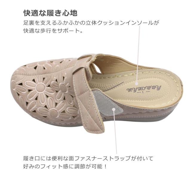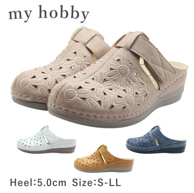 | MY HOBBY マイホビー 15166 レディース サンダル サボ クロッグ ストラップ 厚底 花柄 靴 |