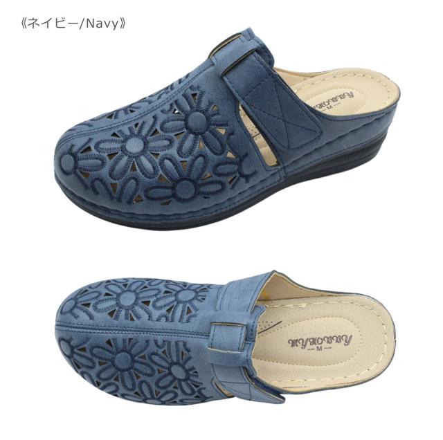 MY HOBBY マイホビー 15166 レディース サンダル サボ クロッグ ストラップ 厚底 花柄 靴