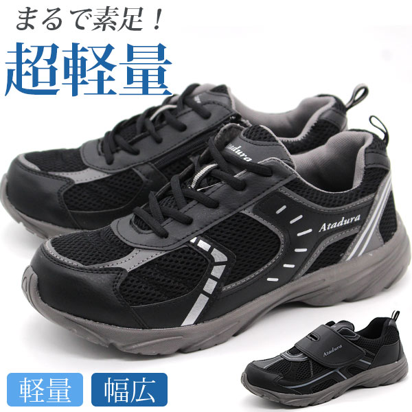 スニーカー メンズ 靴 黒 ブラック 軽量 軽い 3E 幅広 相当 歩きやすい 疲れない 履きやすい ジップ マジックテープ 通勤 通学 おすすめ 人気 定番 おしゃれ かっこいい 厚底 メッシュ 通気性 YS-2007N YS-2088AN Atadura