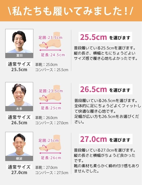 取り扱いサイズ:25cm 25.5cm 26cm 26.5cm 27cm
