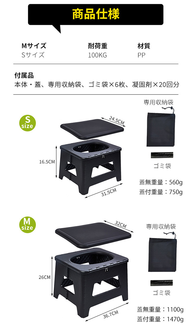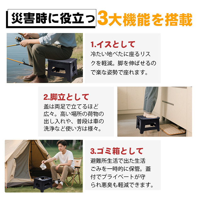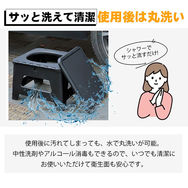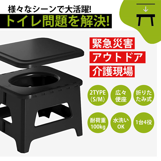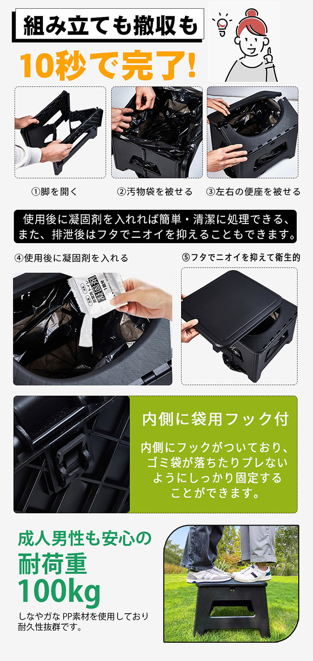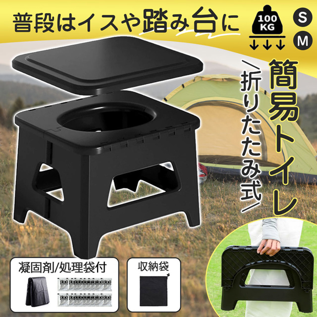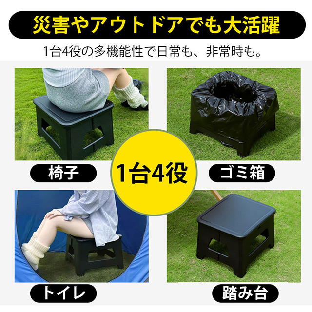 簡易トイレ 折りたたみ ポータブルトイレ 携帯トイレ 防災トイレ 災害用 非常用 多用途 椅子 防災グッズ 処理袋付 車 介護 車中泊 キャンプ アウトドア 登山 避難 緊急 携帯 野外 便器 踏み台 耐荷重100kg 排便袋&凝固剤付き
