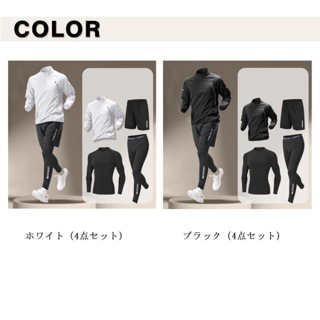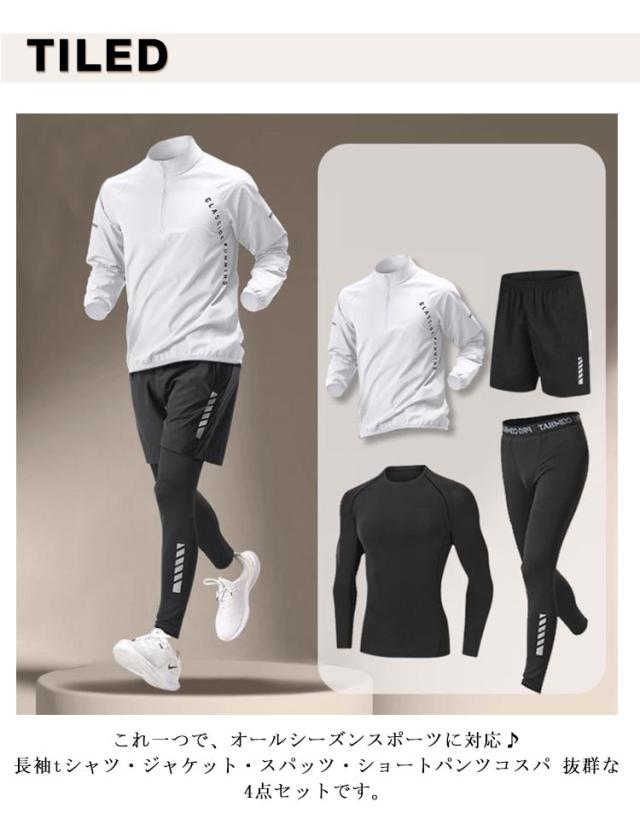 | ジムやトレーニング、ランニング、スポーツ、 あらゆる場面で活躍するコンプレッションウェアセット!これ一つで、オールシーズンスポーツに対応♪長袖tシャツ・ジャケット・スパッツ・ショートパンツコスパ 抜群な4点セットです。 通気性・速乾性・伸縮性に優れた生地を使用し、激しいスポーツ時でもサラッとした快適な着用感♪ 伸縮性に優れたコンプレッションウェア。伸縮性の高いストレッチ素材を採用。身体に圧をかけることで、さまざまなサポート効果をもたらす機能性ウェアです。どんな動きにも自然にフィットし、使用感抜群です。 様々なスポーツシーンで大活躍!スポーツフィットネス、ジョギング、ボクシング、散歩、ランニング、筋肉トレーニングサイクリング、登山、レジャー等スポーツに最適! | |