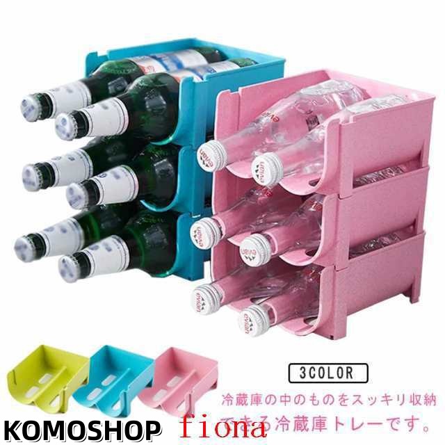 冷蔵庫 ビール ドリンクホルダー 3個セット ペットボトルホルダー 缶ビールホルダー ボトルホルダー ペットボトル 収納トレー 冷蔵庫トレー ストッカー 冷蔵庫 収納 整理 冷蔵庫ラック ワインラック キッチン整理 ピンク グリーン ブルー