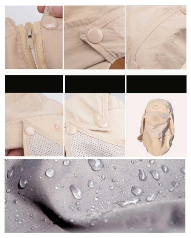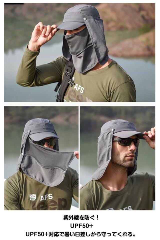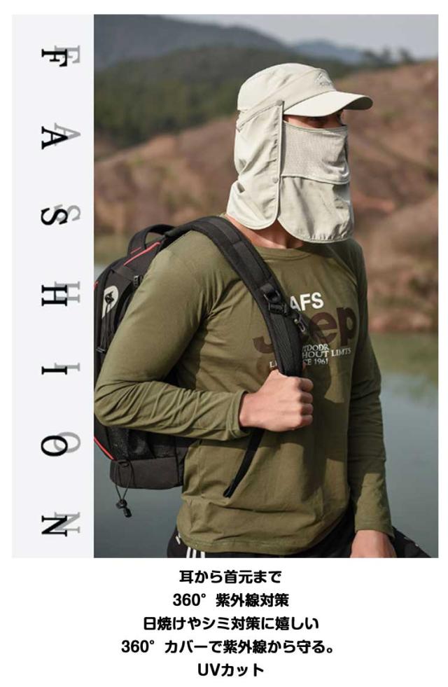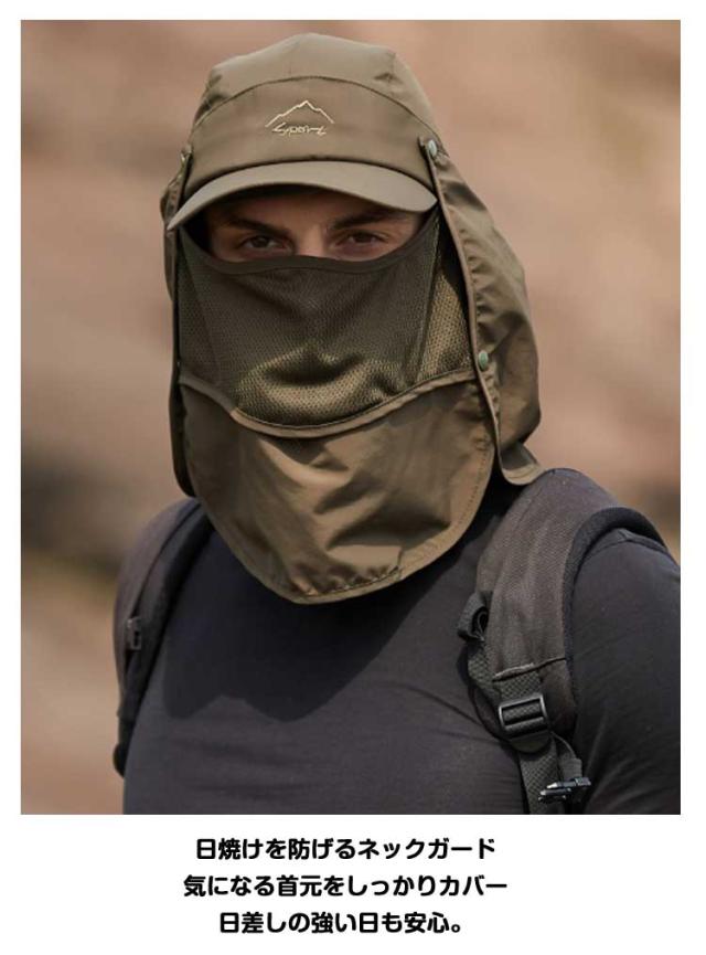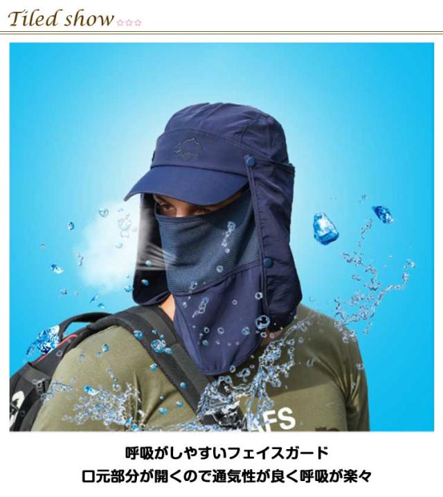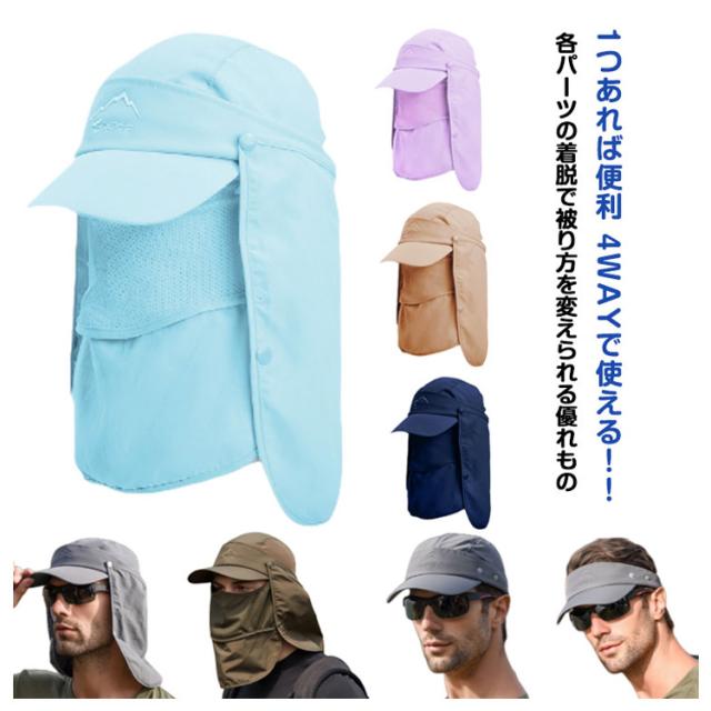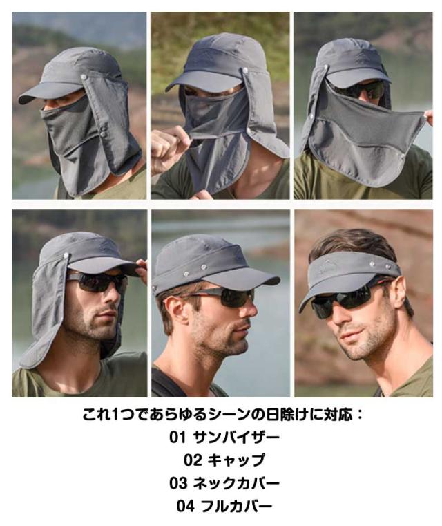 UVカット 水分補給 サンバイザー 紫外線対策 ネックカバー キャップ グッズ 春 夏 秋 日よけ キャップ 農作業 フェイスカバー 収納 帽子 4way 折りたたみ 日焼け防止 ボタン取り外し 顎紐 つば広 無地