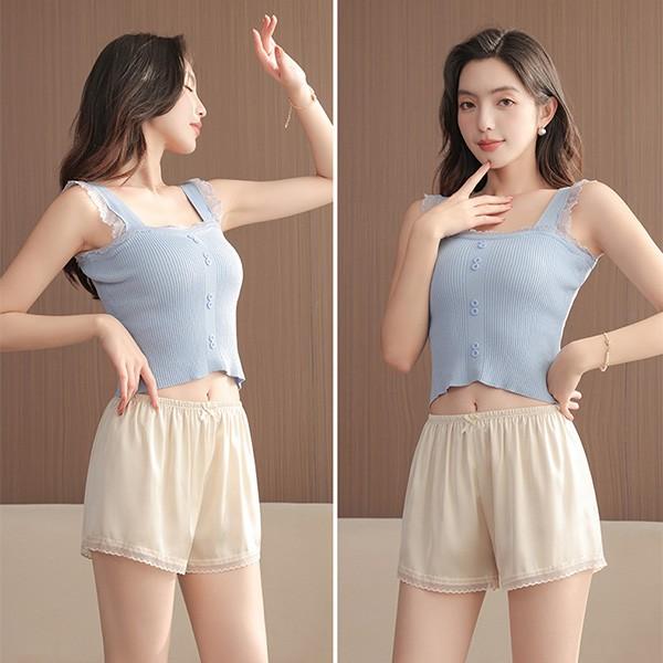 ペチパンツ ショート レース ペチコート パンツ 大きいサイズ ゴム 裾 涼しい 透け防止 ペチパン インナー 部屋着 かわいい ルームウェア パンツ レディース キュロット フリル インナーパンツ 秋 春 夏 透けない 透け対策 薄手 ウエストゴム dl005sasam5