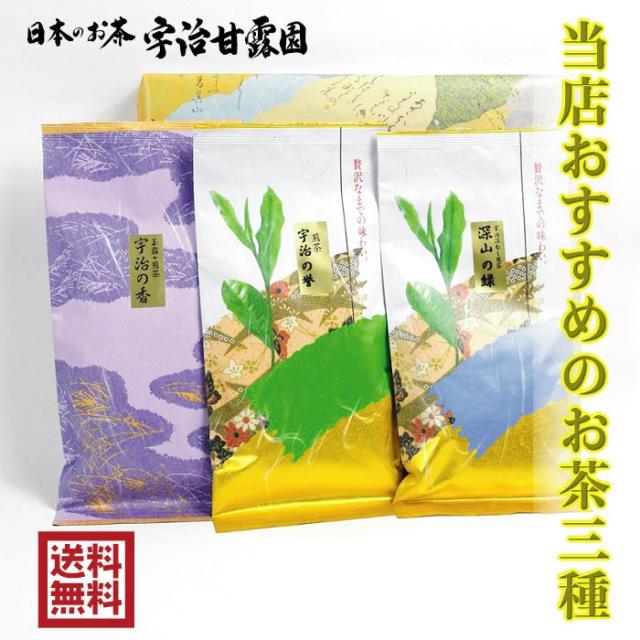 3種のお茶セット 100g 3本 送料無料 国産 お茶 緑茶 茶葉 日本茶 玉露 煎茶 深蒸し茶 宇治茶 京都府産 宇治田原町産 ギフト 母の日 父の日 敬老の日 御歳暮 御中元