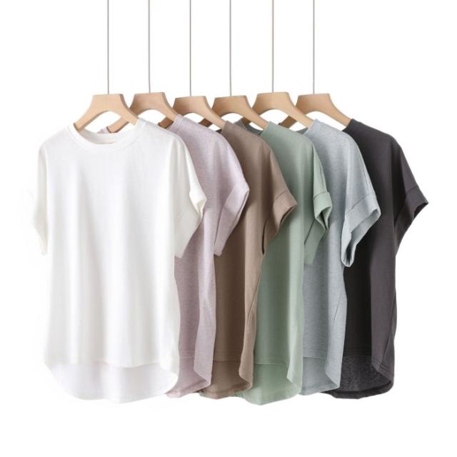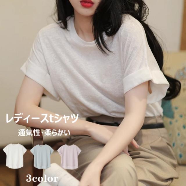 Tシャツ カットソー 半袖 接触冷感 フレンチスリーブ レディース トップス 綿 涼しい 夏 おしゃれ 体型カバー 無地 シンプル 40代 30代 50代 60代 ゆったり 大人 カジュアル