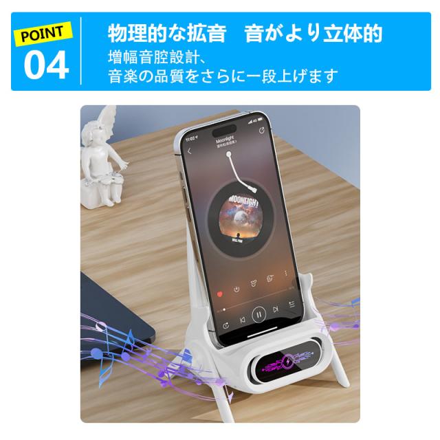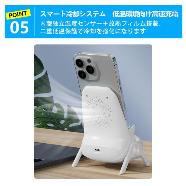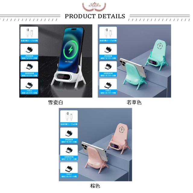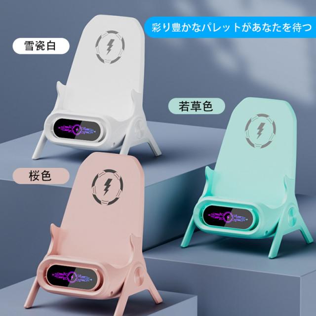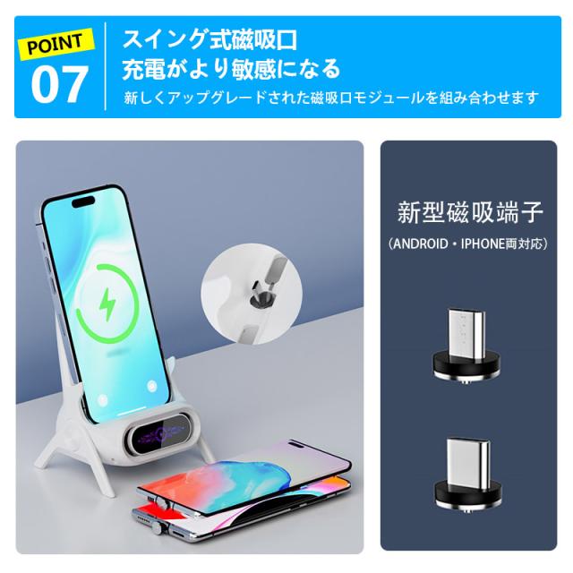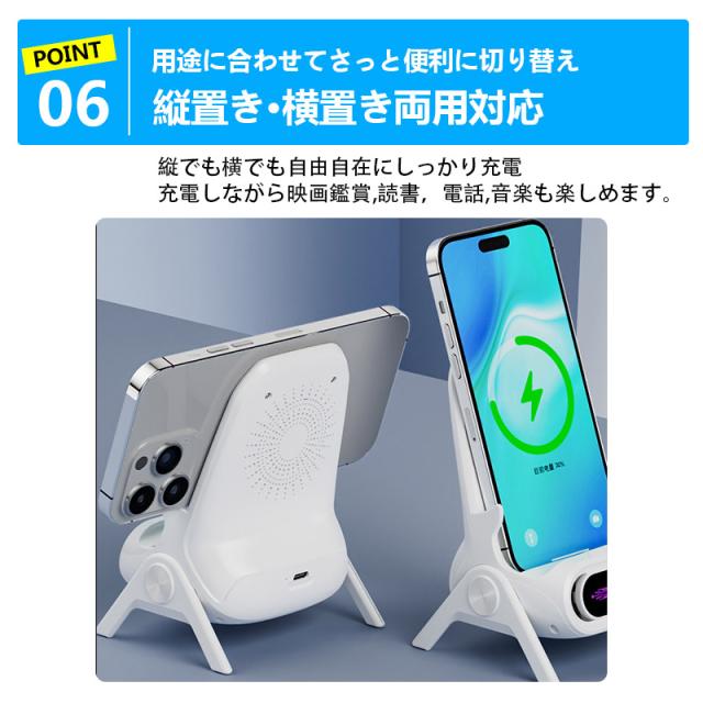 雪瓷白即納 ワイヤレス充電器 Android iphone 縦横両用 急速 15w マグネットスマホ スタンド ケーブル付き タブレット LEDライト スピーカー
