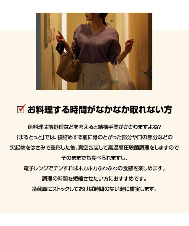●原材料名/真あじ(国内産)、真ほっけ(北海道産)、真さば(国内産)、みりん調味液(砂糖、しょうゆ、みりん、魚醤(魚介類)、食塩)(一部に小麦・大豆を含む)