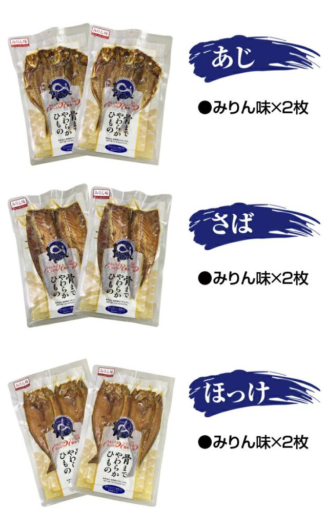 骨まで食べられる干物 6枚セット あじ さば ほっけ みりん味 3種各2枚 常温保存 骨抜き 骨取り不要 焼き魚 焼魚 干物 国産 おかず ご飯のお供 おつまみ 魚 たんぱく質 コラーゲン DHA EPA まるごと食べられる 国産 ファミリー・ライフ TVショッピング ファミラ 送料無料