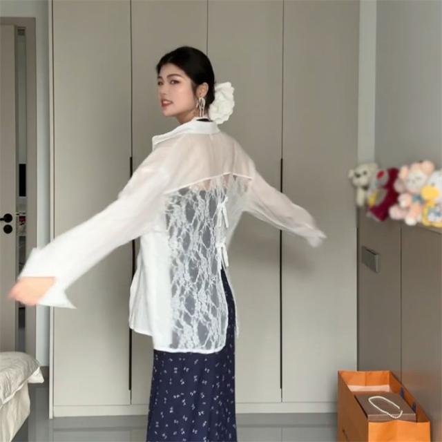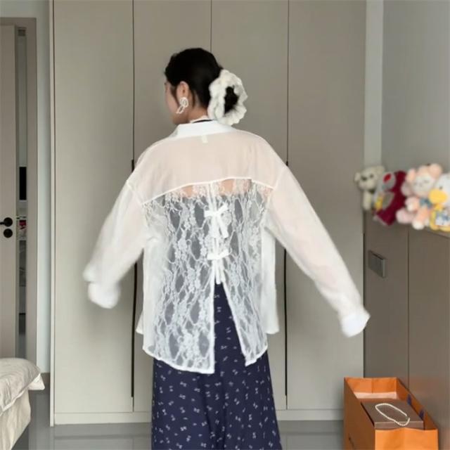 シャツ レディース レース 長袖 シアーシャツ ゆったり 羽織り 夏 薄手 長袖シャツ サマーシャツ 透け感 トップス 大きいサイズ シアー シースルー シンプル カジュアル 羽織 体型カバー きれいめ S M L 2L オフィス 冷房対策 UV対策 紫外線対策