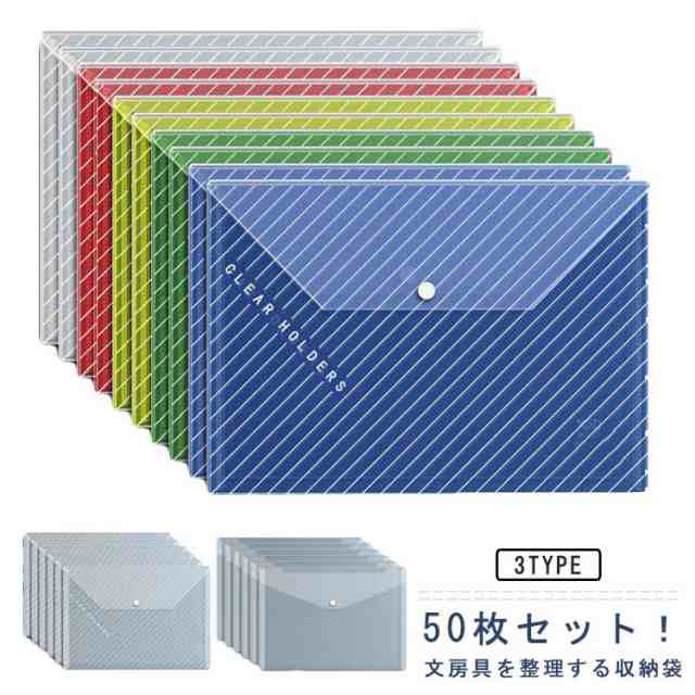 薄型 ファイル袋 スナップボタン式ファイル袋 A4 50枚セット メッシュファイルバッグ 文房具収納 書類収納 整理整頓 クリア オフィス 学生 旅行収納袋 防水 スリム 事務 薄型 軽量 インナーバッグ 収納袋 シンプル 無地 送料無料