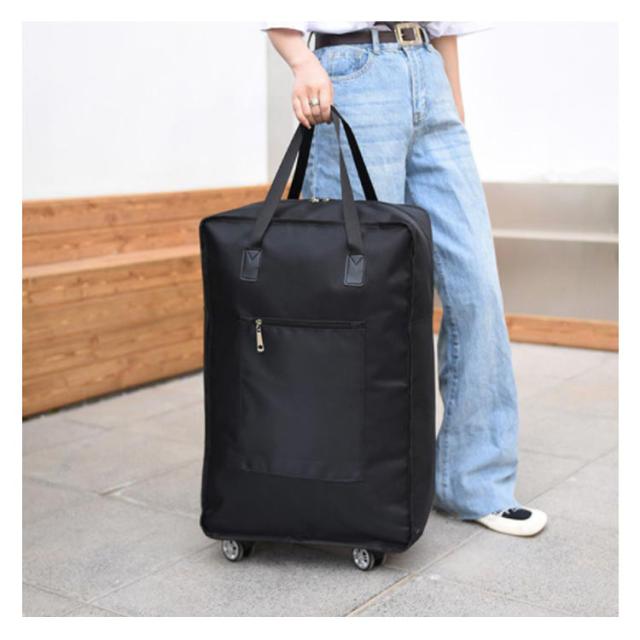 | 軽くてコンパクトな折りたたみソフトキャリーケース。 安定感のある4輪キャスター。電車の中でコロコロと転がっていかないメリットも。 折りたたみ式レバーのデザインで使わない場合に簡単にコンパクト折りたためるので、場所を取りません。 普段使いにもちょっとした旅行にも使えるキャリーケースになります。 | |