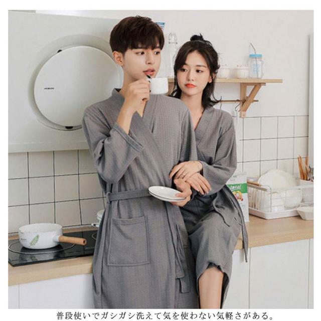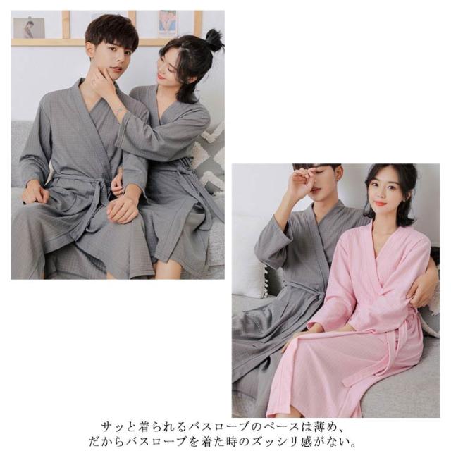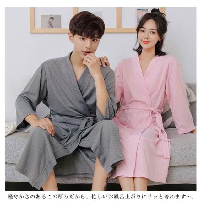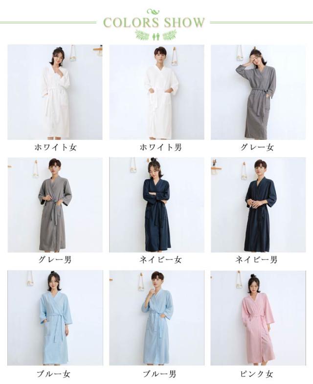 男女兼用5色! バスローブ ルームウェア ペア パジャマ 部屋着 ナイトガウン カップル メンズバスローブ 片面ローブ 寝間着 男女兼用 レディースバスローブ ホテル 七分袖 送料無料 風呂 ホームウェア 温泉 寝巻き 春 夏 秋 カットソー レディース メンズ