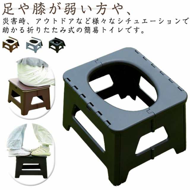 | 足や膝が弱い方や、災害時、アウトドアなど様々なシチュエーションで助かる折りたたみ式の簡易トイレです。 和式ではちょっと大変だった方にコレさえあれば、大丈夫!自宅での介護などとても頼りになります! プラスチック製でまるごと丸洗いができるので、つねに清潔な状態をキープできます。汚れの心配がいらず、非常時でもストレスなく使用できます。 組み立てが簡単にできます。折り畳み時はコンパクトになりますので持ち運びや収納にも困りません。 イスや踏み台、コンテナやゴミ箱として、自宅やアウトドア、車載など様々なシーンで活躍することができます。キャンプや車中泊 時のトイレとしても最適です。 | |
