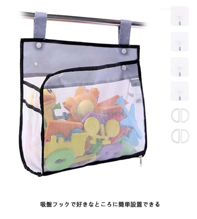| 3個セット バスルームのおもちゃ袋 ポイポイ入れるだけどで片付け完了 通気性に優れ、いつも清潔! 吸盤フックで好きなところに簡単設置できる | |