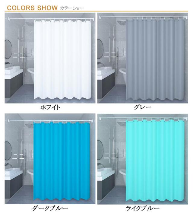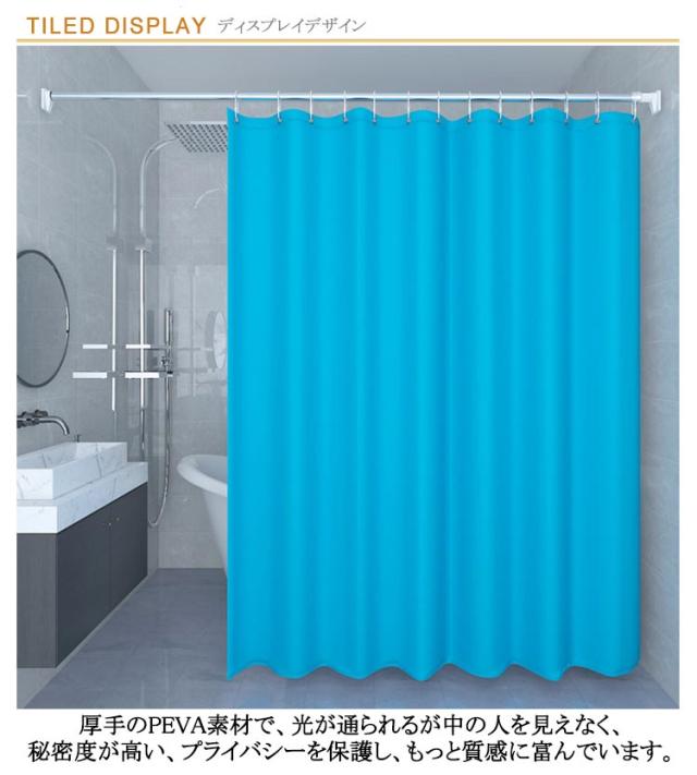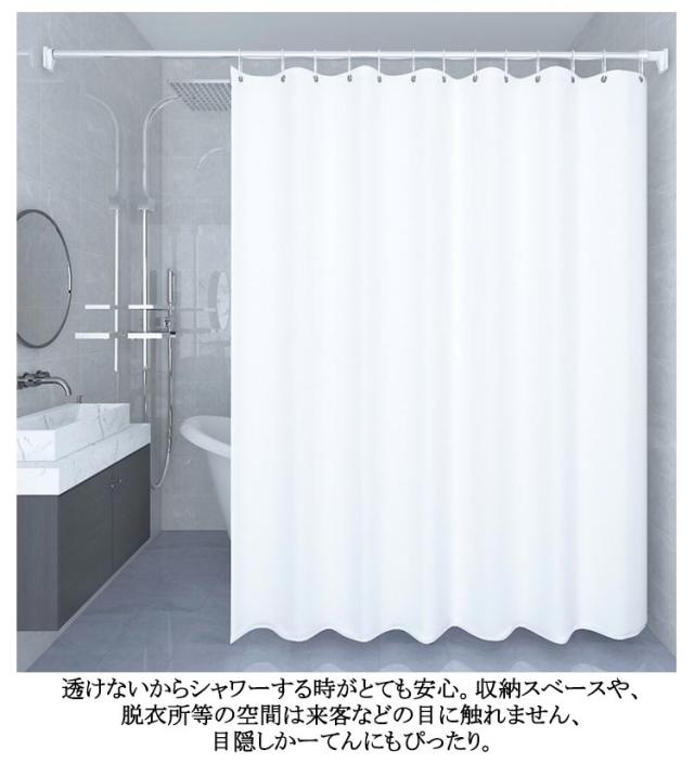 | リング付! 採光性よく、透けない・遮像シャワーカーテン。 幅80?300cm×丈180?200cm 厚手のPEVA素材で、光が通られるが中の人を見えなく、秘密度が高い、プライバシーを保護し、もっと質感に富んでいます。 防水性・防カビに優れ、熱や冷気を通しにくい。浴室のシャワーカーテンとしてはもちろん、ちょっとした目かくしや、暖房、冷房の効率アップにも。 透けないからシャワーする時がとても安心。収納スベースや、脱衣所等の空間は来客などの目に触れません、目隠しかーてんにもぴったり。 浴室カーテンを使用し、床に水が飛び散らないようにするとともに、バスルームの湿気を外に逃がさない保温効果があります。暑い夏でも寒い冬でもバスタイムを楽しめます。 カーテンリング付属しているので、カーテンポールに引っ掛けるだけで取付できます。(カーテンポールは付属しません。) | |