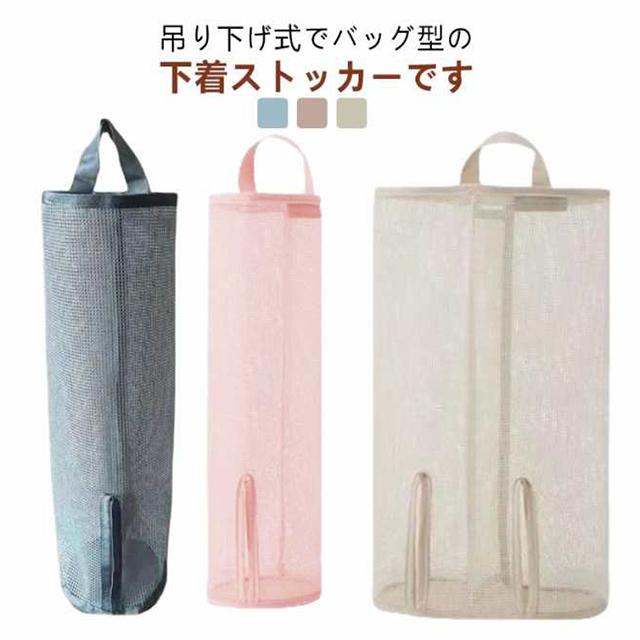 | 吊り下げ式でバッグ型の下着ストッカーです。 靴下や下着などをちょっと入れておくのにも便利。 メッシュ素材で中身が見えるので残量確認も一目瞭然♪ インテリアと馴染むシンプルなデザインも嬉しいポイントです☆ シンプルなデザインは、お部屋の雰囲気にしっくりなじみます。 | |