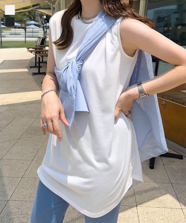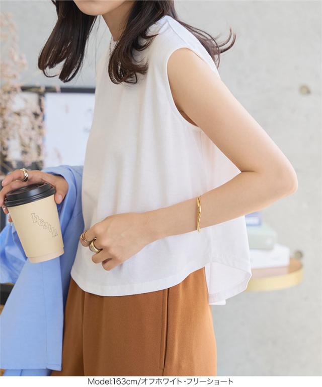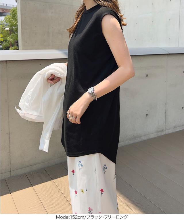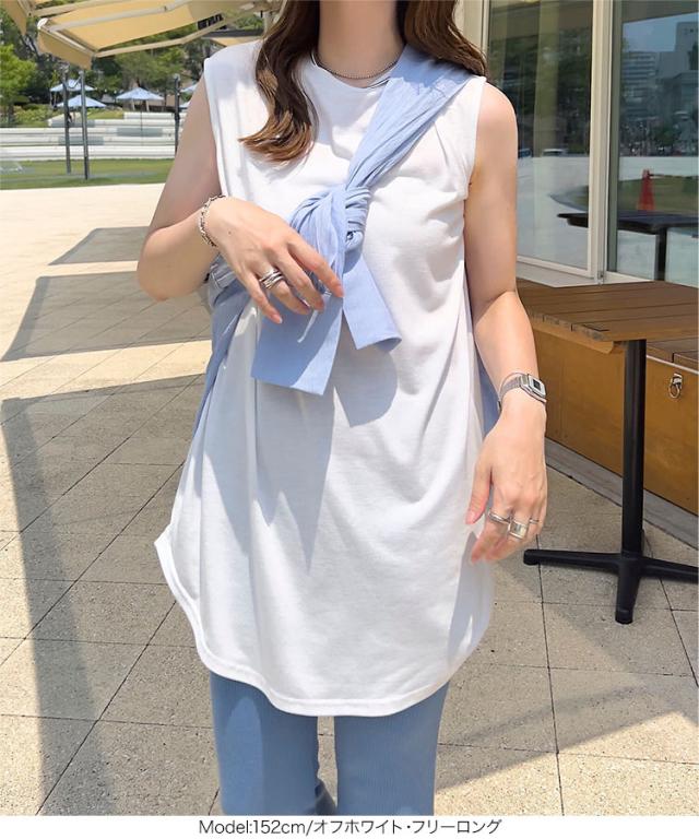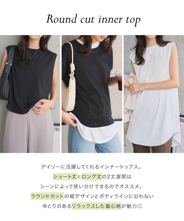 ラウンドカットインナータンクトップス C7582 入荷済 レディース 20代 30代 40代 トップス インナー タンク ノースリーブ タンクトップス レイヤード ラウンドカット リラックス チュニック 白 ホワイト 黒 ブラック ゆったり ショート丈
