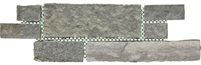 自然の模様を、手軽に敷く。ネット張りにより、施工の手間が大幅に軽減し、手軽に敷くことができます。割肌の自然な風合いと、天然石ならではの上質な質感を足元に。水平ラインが際立ち広がりをもたらすバトンと、幾何学乱形が魅力のジオから選べます。