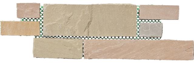 自然の模様を、手軽に敷く。ネット張りにより、施工の手間が大幅に軽減し、手軽に敷くことができます。割肌の自然な風合いと、天然石ならではの上質な質感を足元に。水平ラインが際立ち広がりをもたらすバトンと、幾何学乱形が魅力のジオから選べます。