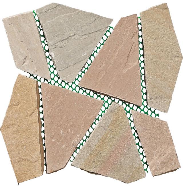 自然の模様を、手軽に敷く。ネット張りにより、施工の手間が大幅に軽減し、手軽に敷くことができます。割肌の自然な風合いと、天然石ならではの上質な質感を足元に。水平ラインが際立ち広がりをもたらすバトンと、幾何学乱形が魅力のジオから選べます。