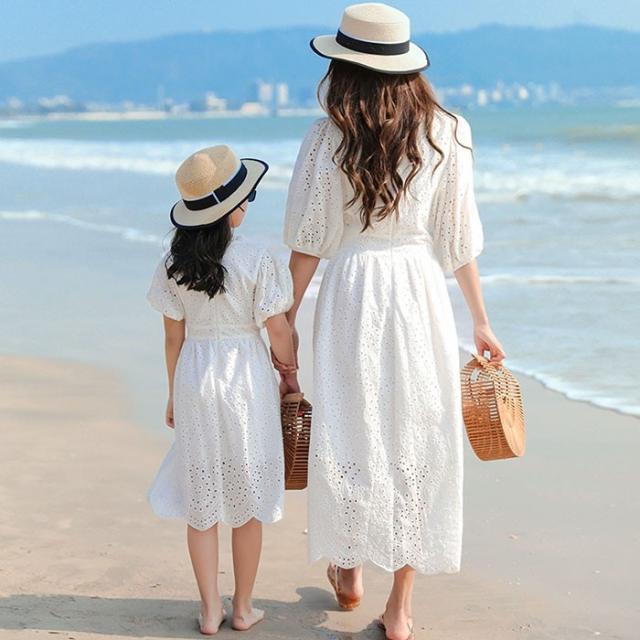 親子コーデ ワンピース レディース 白ワンピース 子供ワンピース オシャレ フリル ホワイト 白 シアー感 無地ワンピ ママ 母 キッズ 親子 シンプル 韓国 かわいい 旅行 海デート リゾート 沖縄 夏ワンピ 白ワンピース 子供 キッズ 110 120 130 140 150 S M L 2L dd025m6m6m6