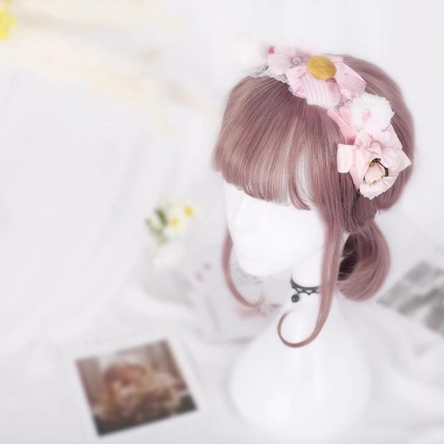 ウィッグ メッシュ ミディアム ショート ロリータ 原宿風 かつら 巻き毛 ゆめかわ パーマ ぱっつん前髪 ゆめかわいい コスプレウィッグ 可愛い ショート 耐熱ウィッグ コスチューム 仮装 大人 自然 ナチュラル 文化祭 普段使い ハロウィン
