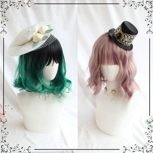 ウィッグ メッシュ ミディアム ショート ロリータ 原宿風 かつら 巻き毛 ゆめかわ パーマ ぱっつん前髪 ゆめかわいい コスプレウィッグ 可愛い ショート 耐熱ウィッグ コスチューム 仮装 大人 自然 ナチュラル 文化祭 普段使い ハロウィン グリーン ピンク dp011m6m6m6