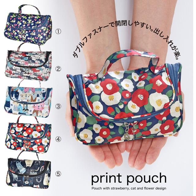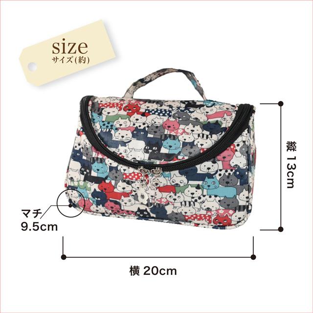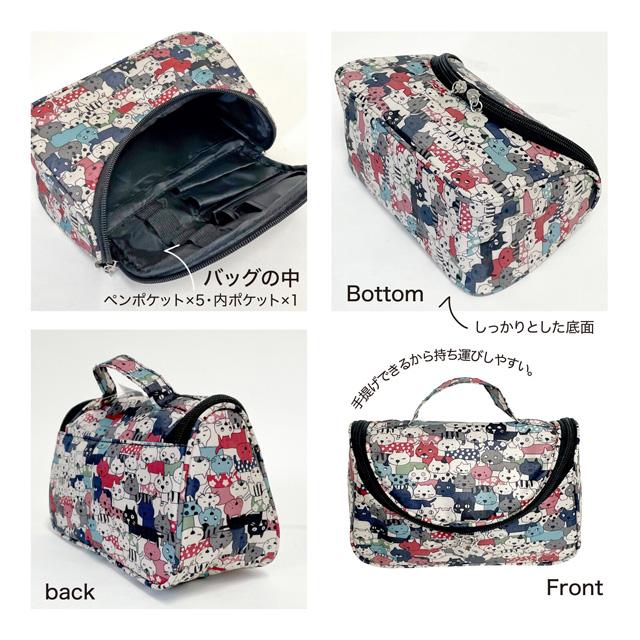 ポーチ 持ち手付き レディース 猫柄 花柄 大きめ 大容量 バニティ 化粧ポーチ コスメポーチ メイクポーチ ペンポケット ダブルファスナー 小物入れ 軽量 持ち運び 便利 猫雑貨 ネコグッズかわいい おしゃれ ギフト プレゼント【 誕生日 】