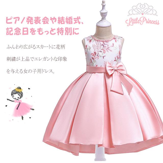 商品名 | 子供ドレス 女の子 ピアノ発表会 キッズドレス 110 120 130 140 150cm フォーマルワンピース 花柄刺繍 ノースリーブ 丸首 七五三 結婚式 入園式 卒園式 入学式 誕生日 演奏会 夏 プリンセス風 |