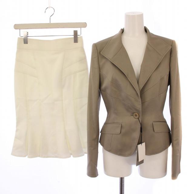 【中古】マテリア セットアップ 上下 テーラードジャケット マーメイドスカート 38 36 グレー 白 レディース