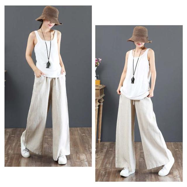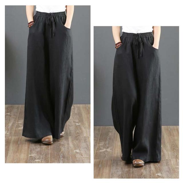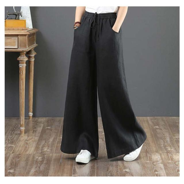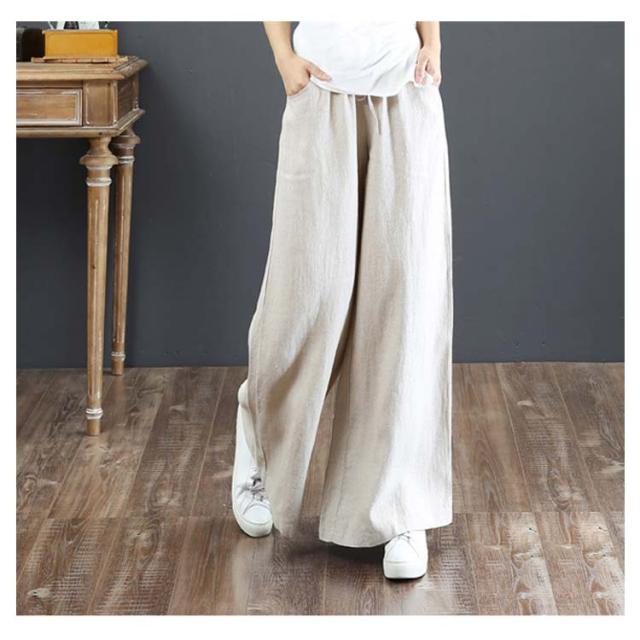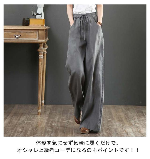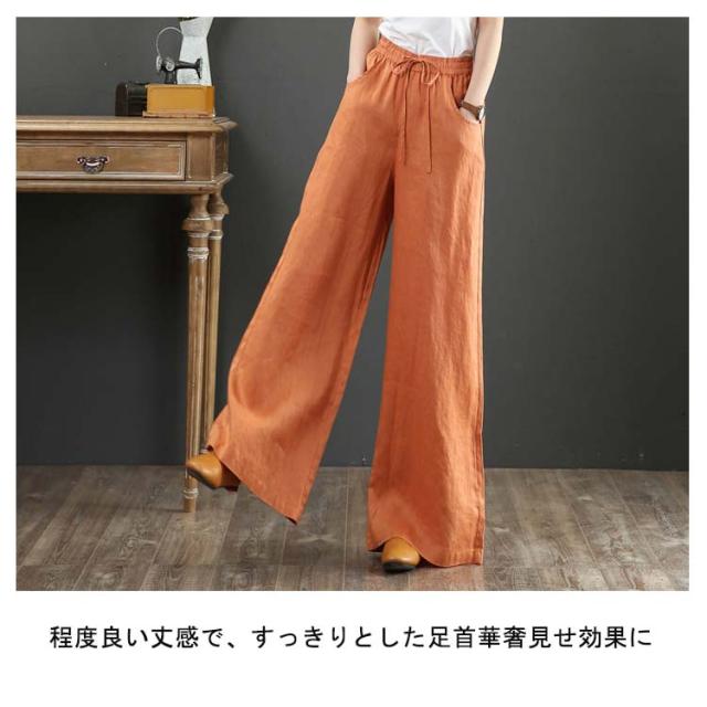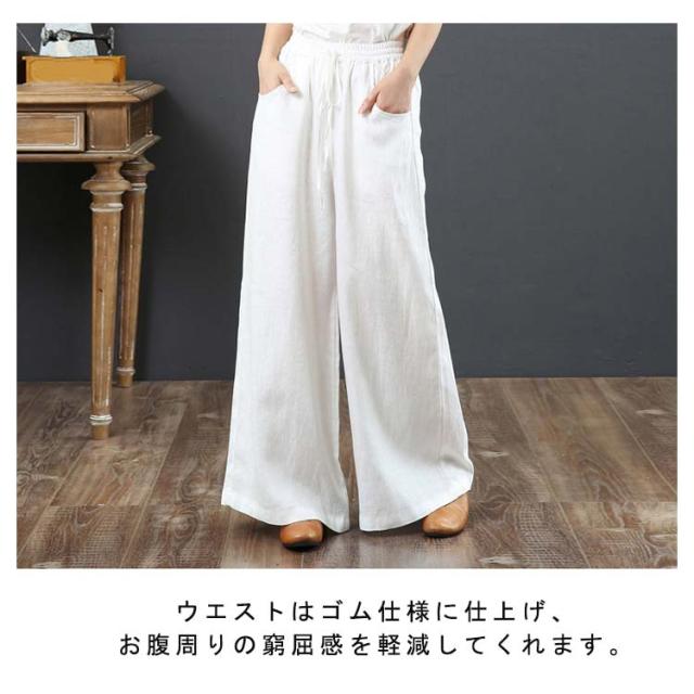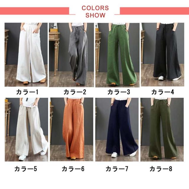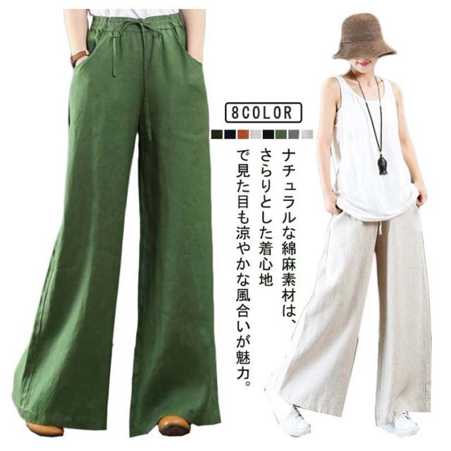 ロングパンツ 夏 レディース ワイドパンツ コットン ガウチョパンツ リネン 亜麻 フレア ワイドパンツ 麻混 ウエストゴムパンツ パンツ ワイドパンツ 麻 夏 接触冷感 涼しい 春 体型カバー ゆったり