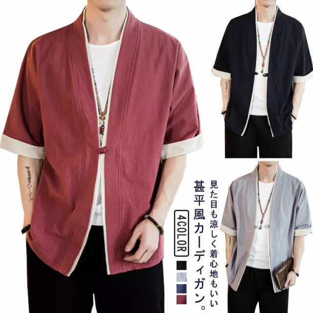 ゆったり 浴衣 大きいサイズ サマーカーディガン 甚平式 レイヤード カーディガン 半袖 前開き トップス 浴衣 夏 和風 L 羽織 アウター 着物 重ね着 オーバーサイズ 無地 コスプレ 花火大会 M 前開き XL 2XL 3XL メンズ