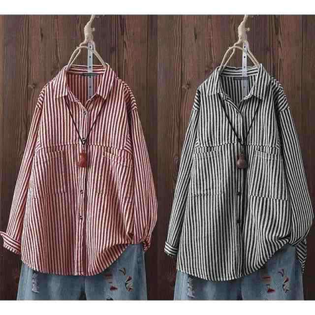 ブラウス レディース トップス シャツ シャツブラウス OL 無地 長袖 大きいサイズ コットン シャツ 襟付き ストライプガラ オフィス 秋 春 夏 送料無料