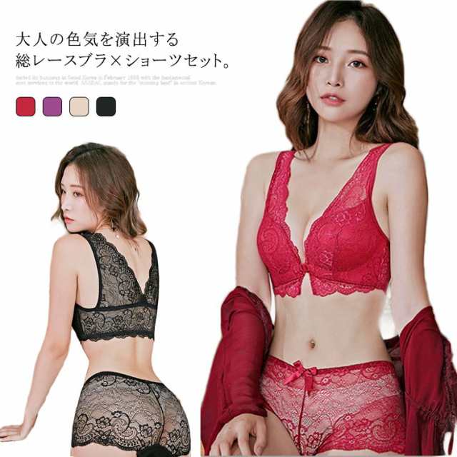 ノーストレス 送料無料 ショーツ ブラジャー 全20サイズ 上下セットアップ フロントフック 総レース 透け感 総レースショーツ 脇肉キャッチ 寄せ 盛れる 送料無料 響かない インナー 見せブラ
