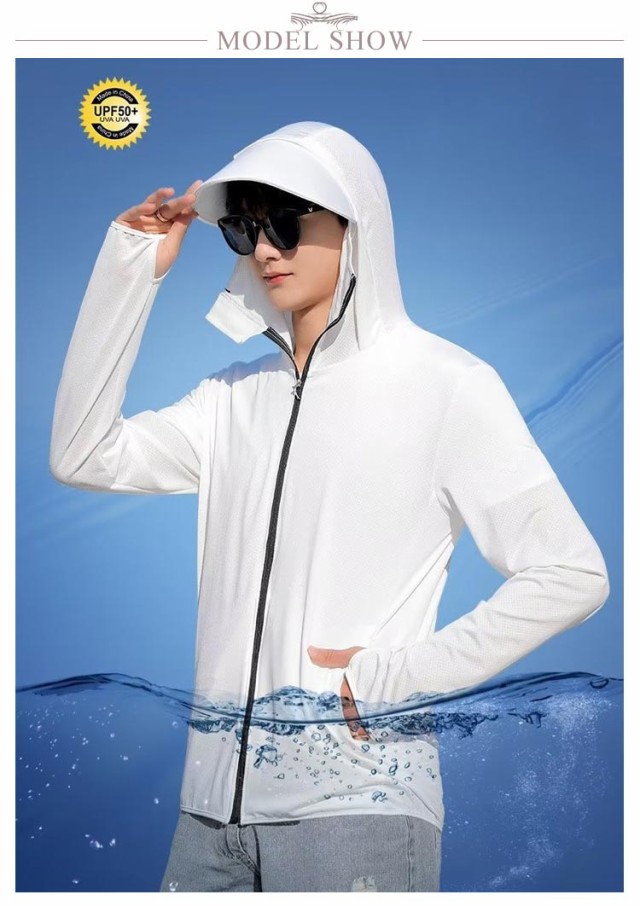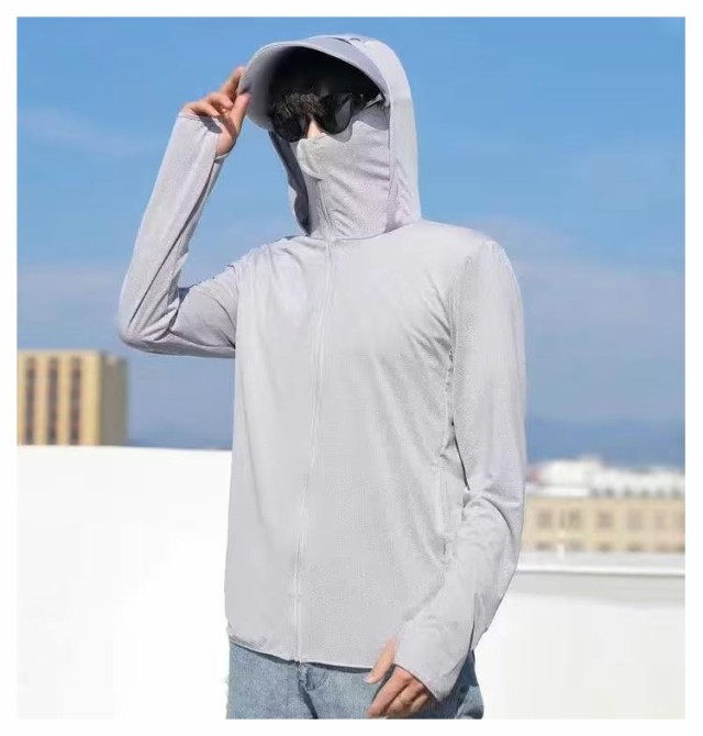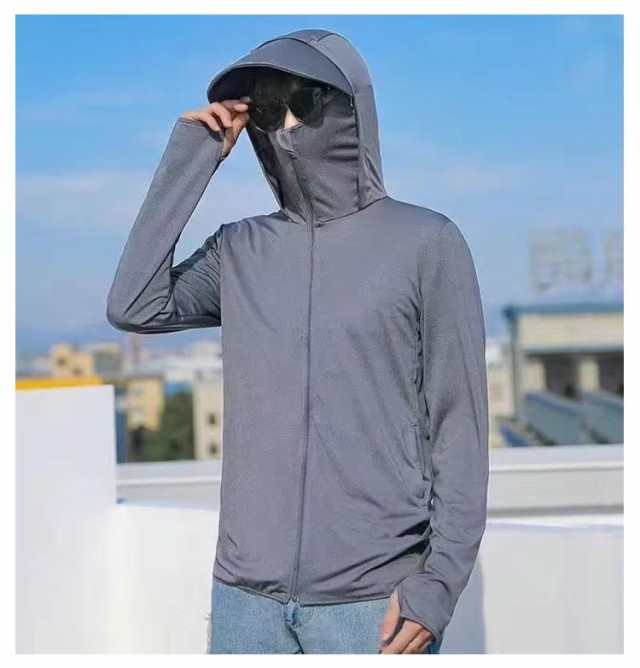 | 接触冷感 男女兼用 つば付きフード、指穴袖、フェイスまで覆えるガードでしっかりUV対策! | |