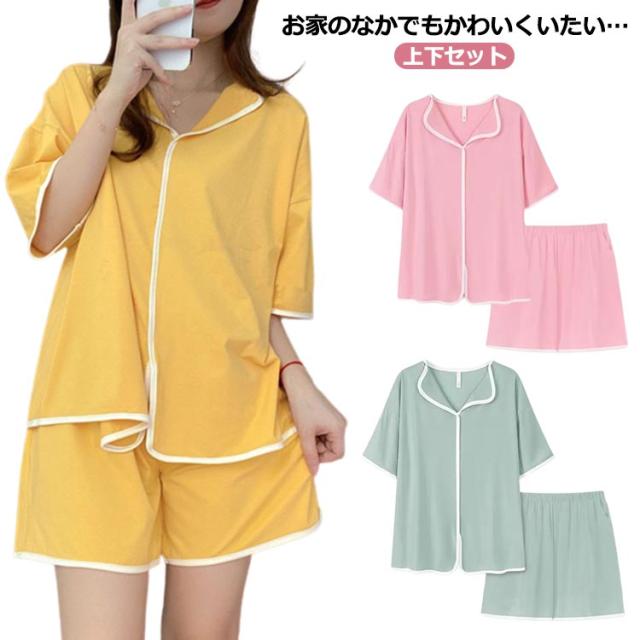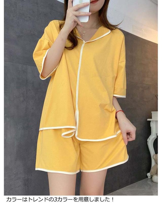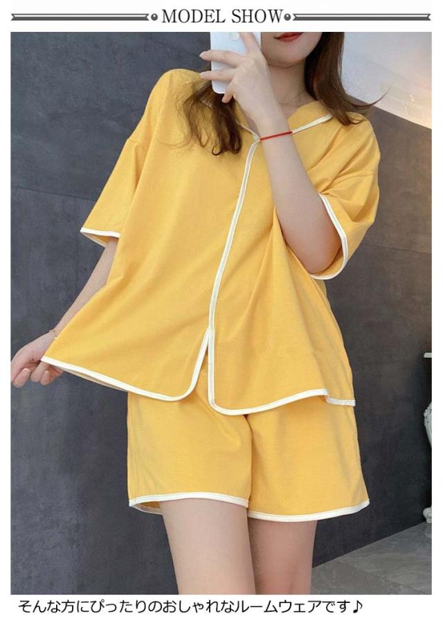 ルームウェア 夏 大人シンプル ハイウエスト 上下セット レディース かわいい 大人 寝間着 半袖 パンツ パジャマ ナイトウェア 部屋着 セット セットアップ 寝巻 リラックスウェア プレゼント 女性 ナイトウエア 送料無料