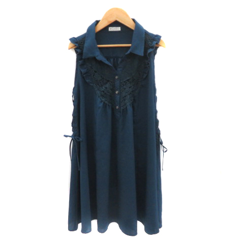 【中古】アクシーズファム ノースリーブワンピース ひざ丈 スキッパーカラー レース M ダークグリーン レディース