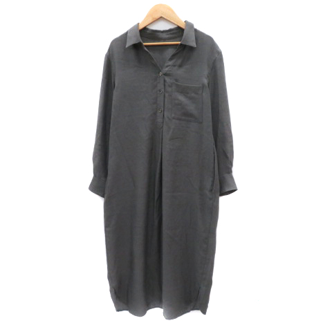 【中古】グリーンレーベルリラクシング ユナイテッドアローズ シャツワンピース ロング丈 長袖 グレー レディース